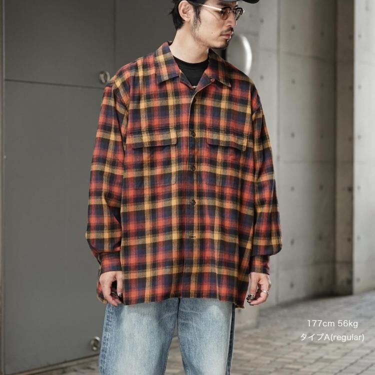 marka / DOUBLE POCKET OPEN COLLAR L/S SHIRT (SUPER 140s 2/96 WOOL VIYELLA)