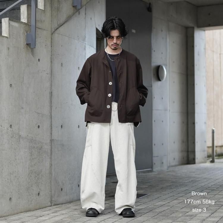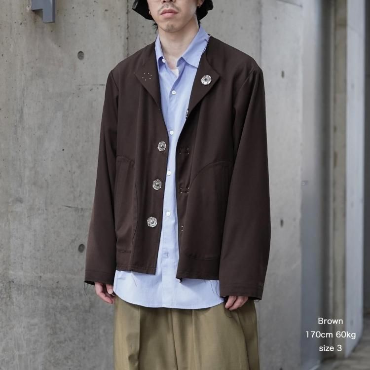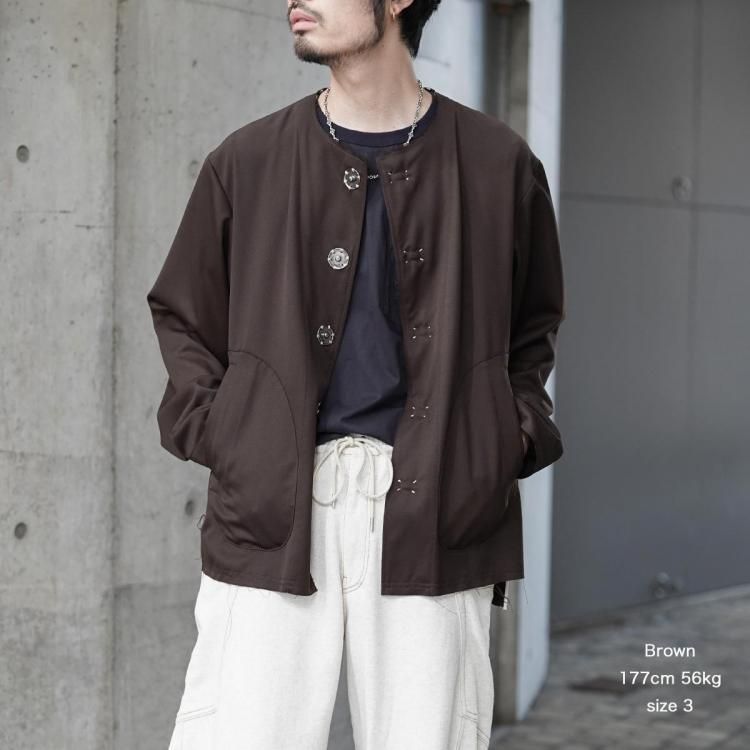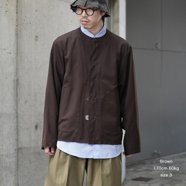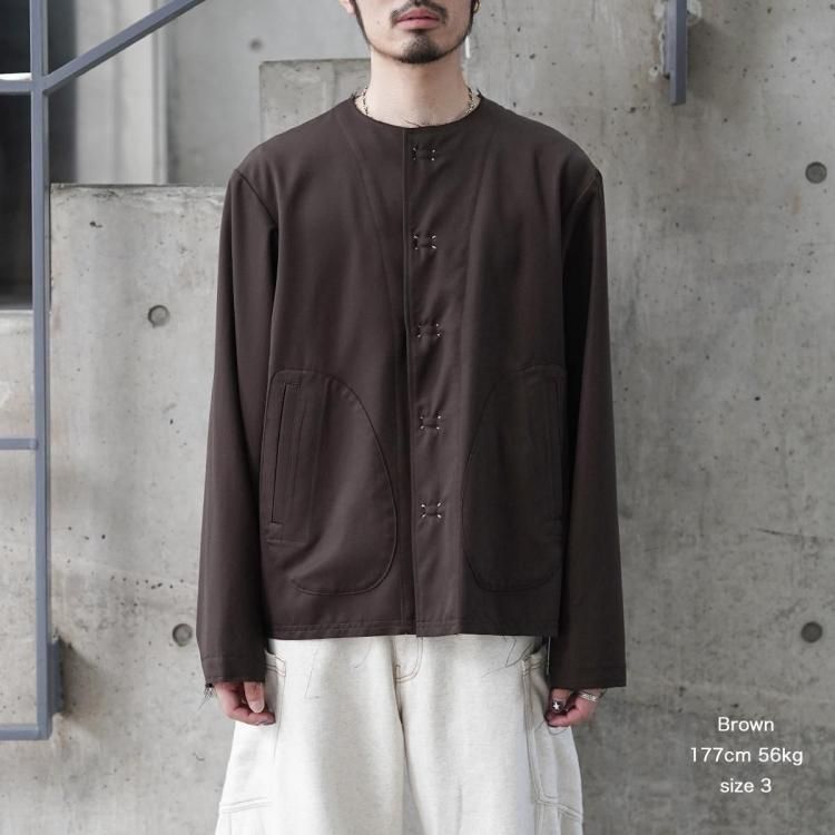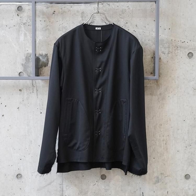 KHOKI / No-collar wool gabardine jacket