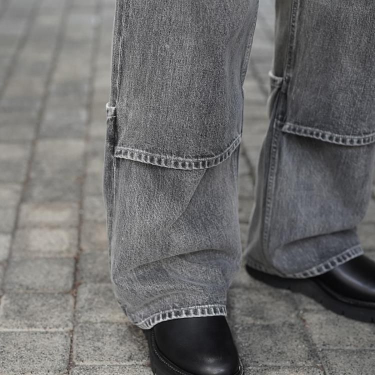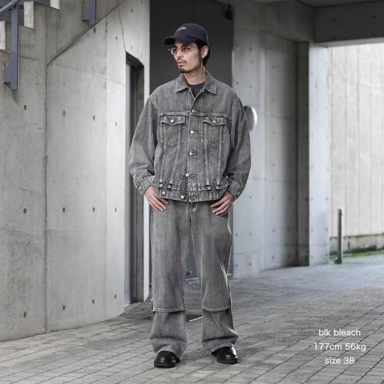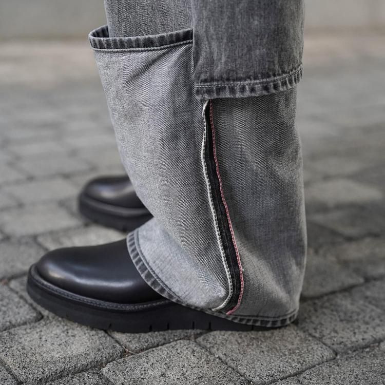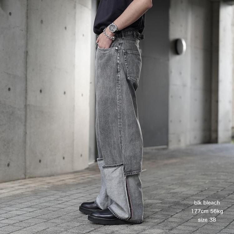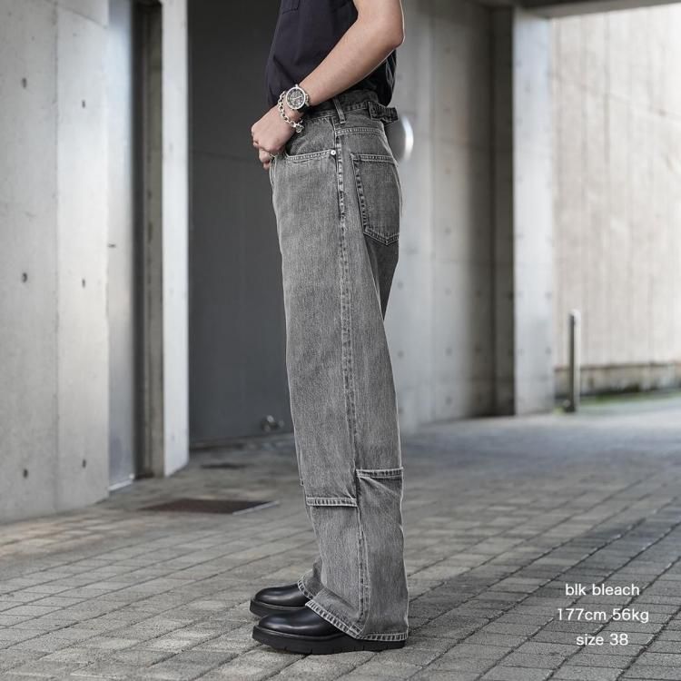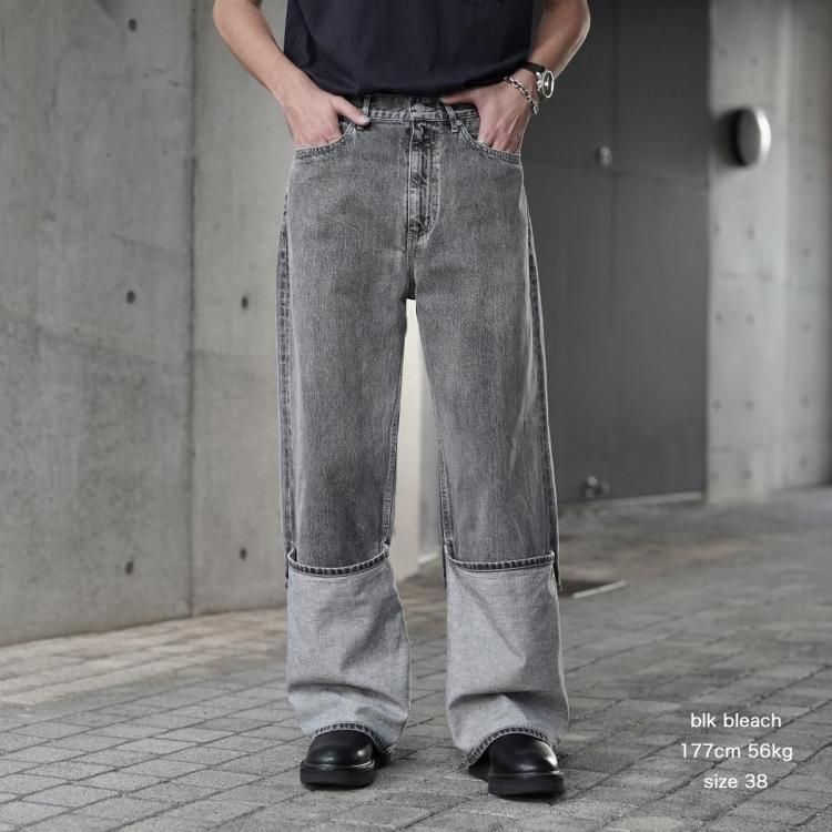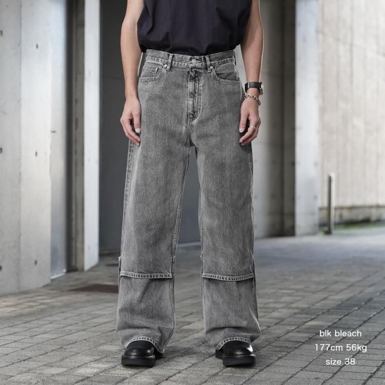 beautiful people / selvedge denim flip hem pants blk bleach