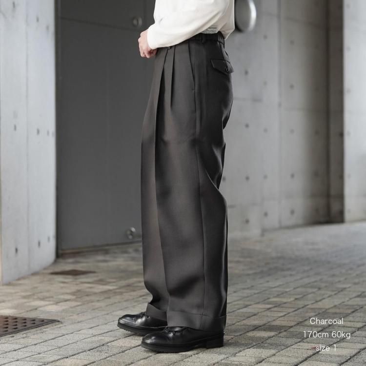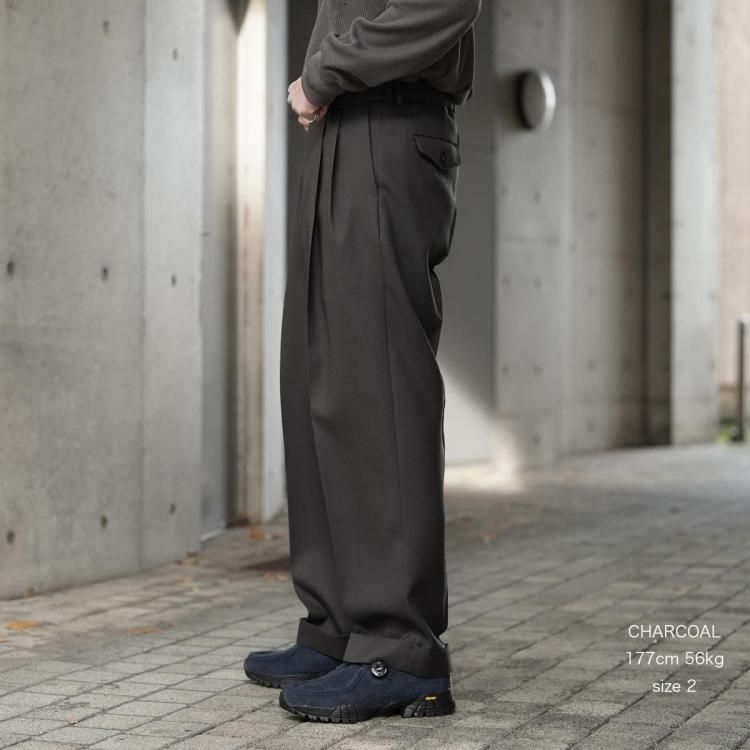 MARKAWARE / DOUBLE PLEATED CLASSIC WIDE TROUSERS (HEAVY ORGANIC WOOL TROPICAL)
